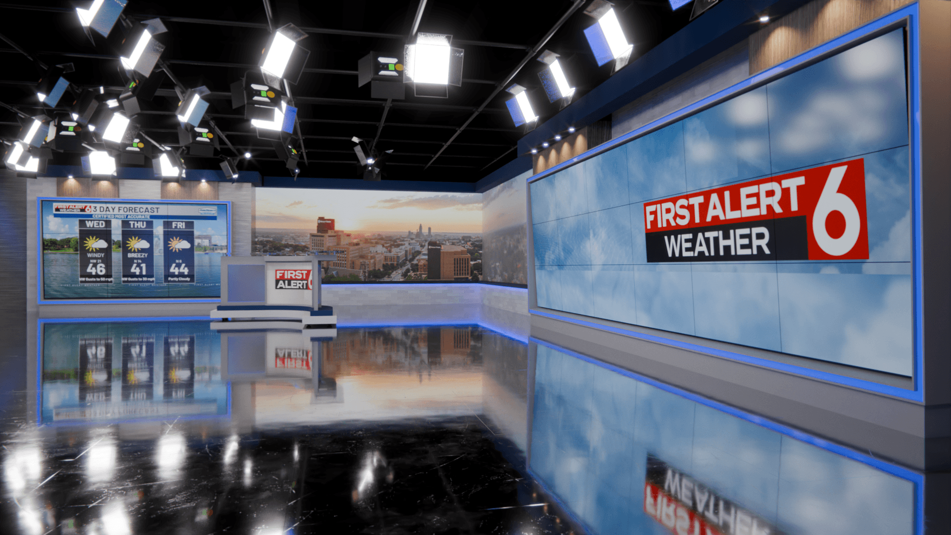 Ultrawide photography of local landmarks for our LED wall. Options to match each season, and each time of day, for each show.